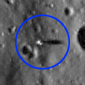 In the center of this image from the Lunar Reconnaissance Orbiter, there’s a small object casting a shadow toward the right. That object is the remaining section of the Apollo 11 lunar module, Eagle, from which astronauts Neil Armstrong and Edwin “Buzz” Aldrin made history as the first humans to step foot on the moon 40 years ago Monday, July 20, 1969.