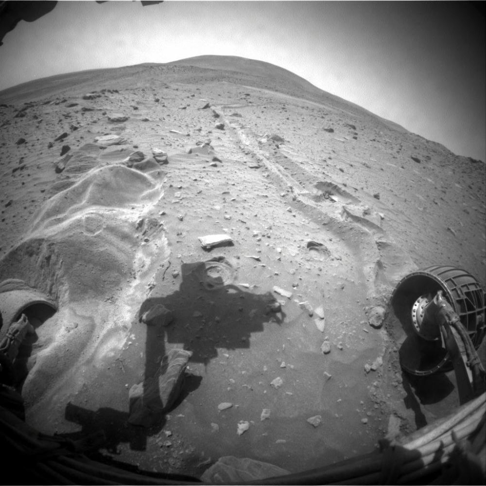 Add to that it already had a side wheel out and there also seems to be a pyramid-shaped rock scraping against its underside…it’s not looking good for little Spirit.