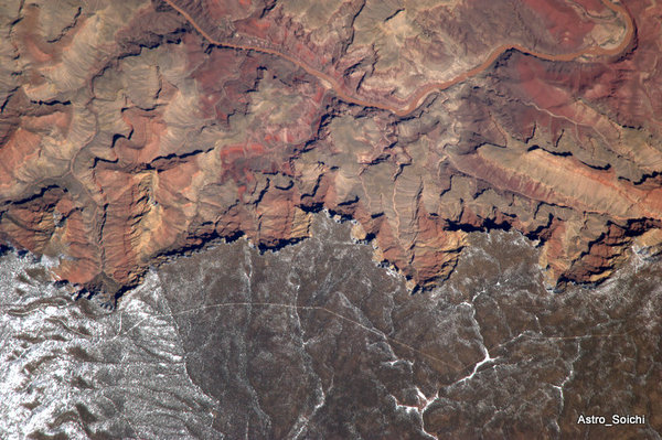 Cutting over a mile into the surrounding landscape, the Grand Canyon in Arizona is one of the most amazing places I have ever visited…and it’s no less beautiful from 200 nautical miles up! This photo was taken today by Japanese astronaut Soichi Noguchi aboard the International Space Station and immediately sent to his TwitPic page for everyone to enjoy. Soichi uploads about a dozen photos every day as the ISS cruises around the world at 17,500 mph…at that speed, he can upload a photo of the Grand Canyon one minute and the Ukraine the next! (Well, not literally but pretty darn close.)