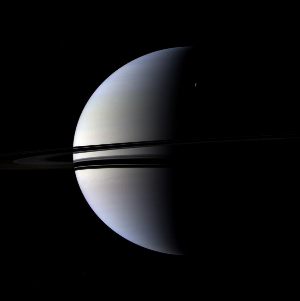 Saturn Shades of Blue Posted by Jason Major on July 17, 2010 RGB composite of Saturn. July 15, 2010. Just some more Saturn beauty. Composite of raw image data in RGB filters from Cassini’s wide-angle camera, taken on July 15, 2010. (Not sure what moon that is.) Have a great weekend! Image: NASA/JPL/SSI. Edited by J. Major. Rate this:Like this article? Share it! Share on X (Opens in new window) X Share on Facebook (Opens in new window) Facebook Share on Pinterest (Opens in new window) Pinterest More Email a link to a friend (Opens in new window) Email Share on Reddit (Opens in new window) Reddit Share on Tumblr (Opens in new window) Tumblr Share on LinkedIn (Opens in new window) LinkedIn Like Loading... Related