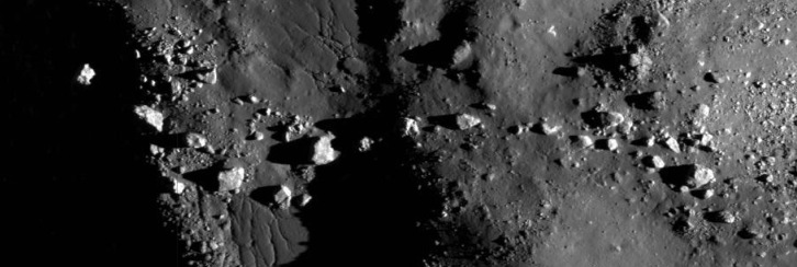 Piles of boulders cast long shadows in the floor of the 18.6-mile (30 km) wide Necho crater on our moon. This dramatically-lit image from the Lunar Reconnaissance Orbiter Camera (LROC) shows the final result of a large impact on the lunar surface, and gives a nice example of some of the rugged terrain that can be found there. For an idea of scale, the largest boulder in the upper right portion is nearly 300 feet long; it would pretty much cover a US football field.