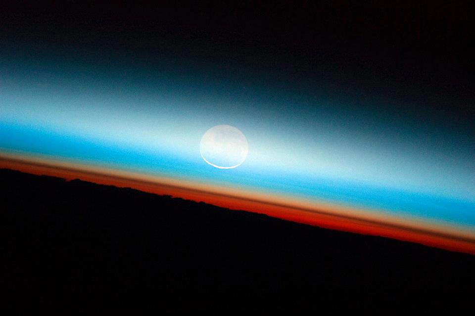 Another stunning view from the Space Station, this photo was taken by Expedition 28 astronaut Ron Garan on July 31, 2011 and shows the Moon seeming to sink into the ocean of air that is our life-supporting atmosphere.