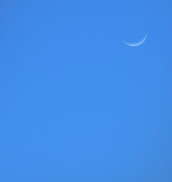 What a weekend for sky gazing! As promised in Friday’s article on Universe Today, Venus was visible during the daylight hours this Saturday, very close to the crescent Moon. If you had clear weather you too may have been able to catch a glimpse of the scene above, photographed from my location in north Texas at 6:35 p.m. local time.