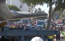 This weekend the space shuttle Endeavour is on its way to the California Science Center, getting driven via Overland Transporter along 12 miles of Los Angeles roads at a more-or-less steady 2 mph. Hundreds of onlookers have gathered along the route to catch a glimpse of a real-life spaceship passing by just outside their front doors. Now that’s really not something you see every day!