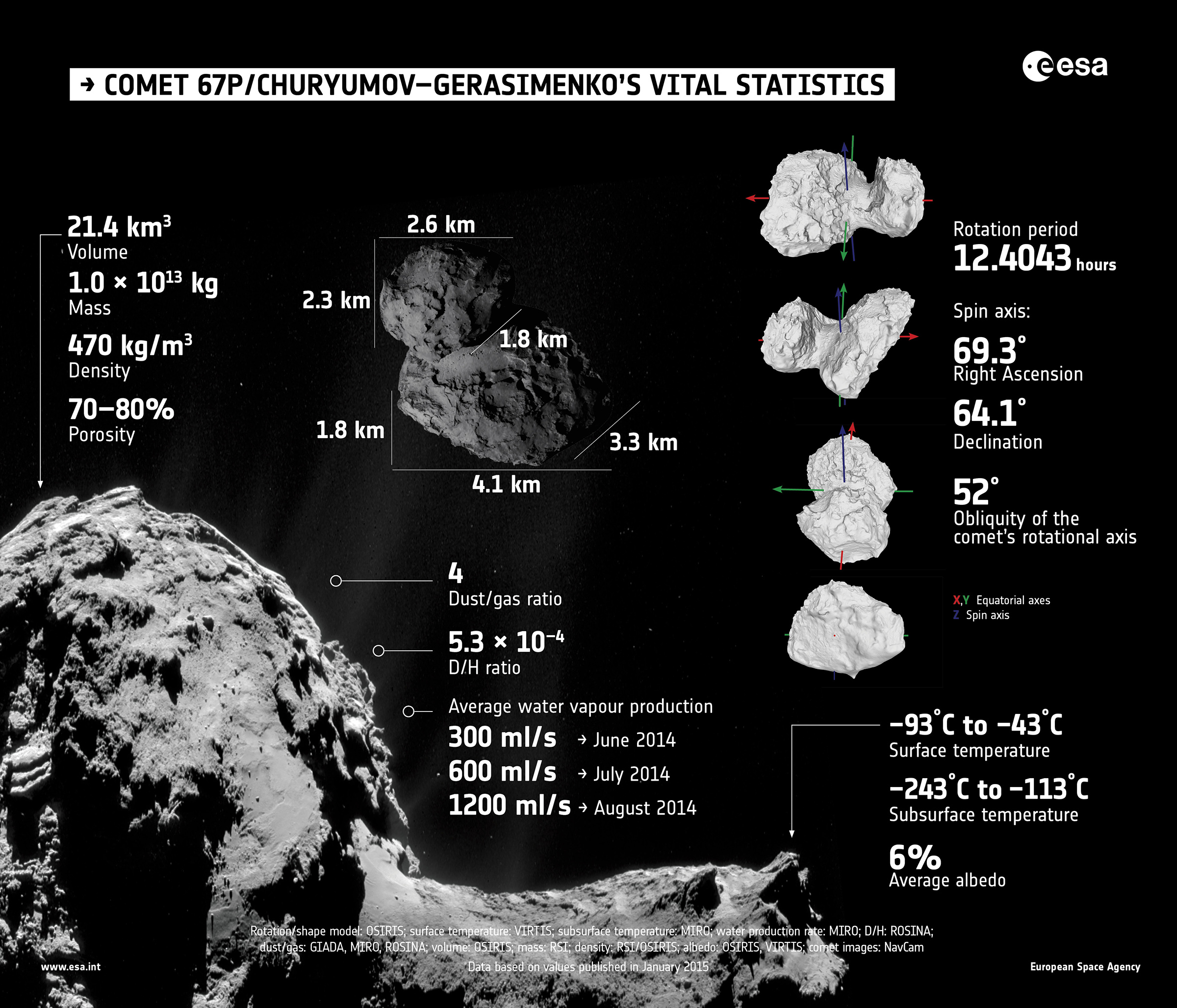 In addition we now have some vital stats on the comet, including its size, density, porosity, rotation, and others.