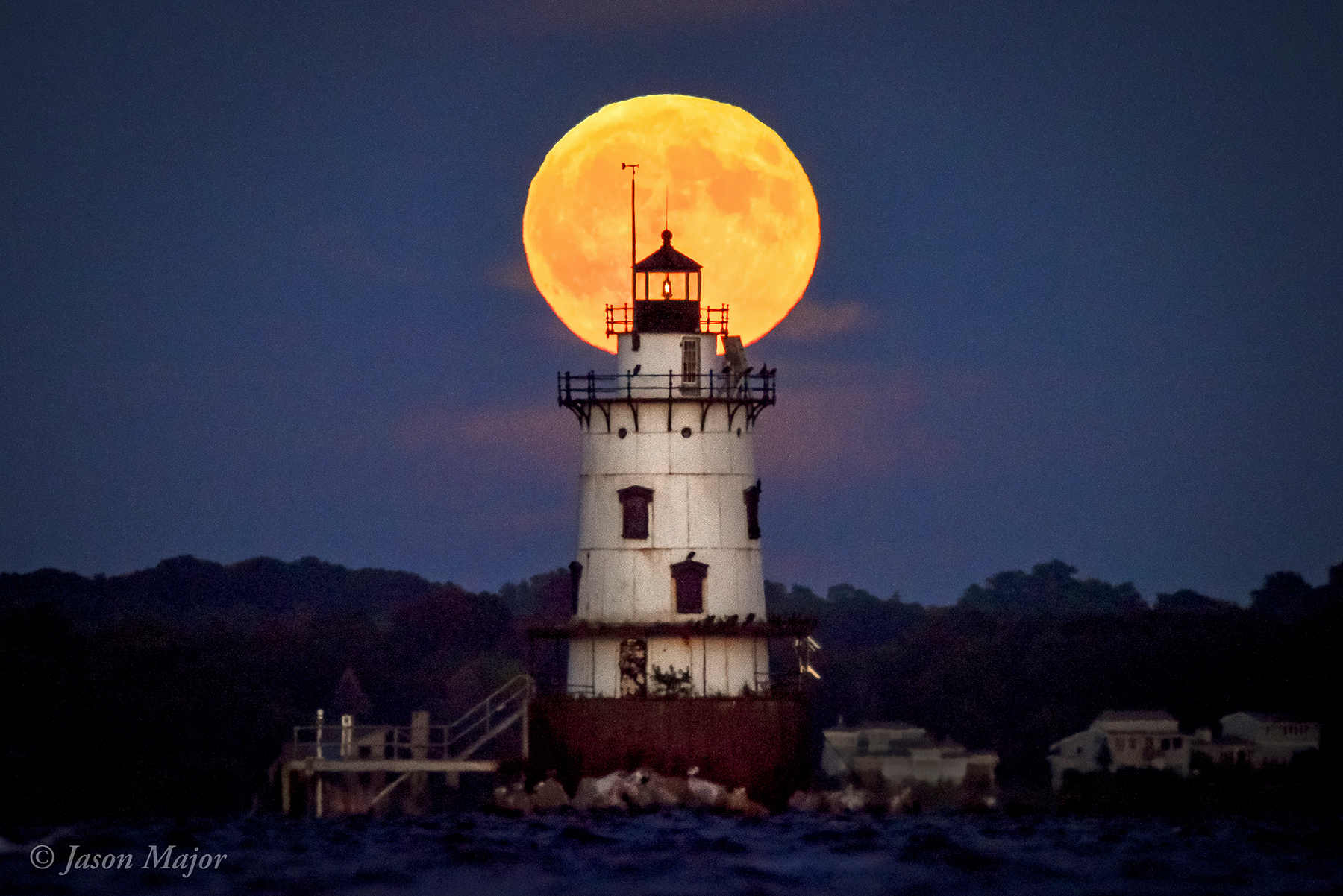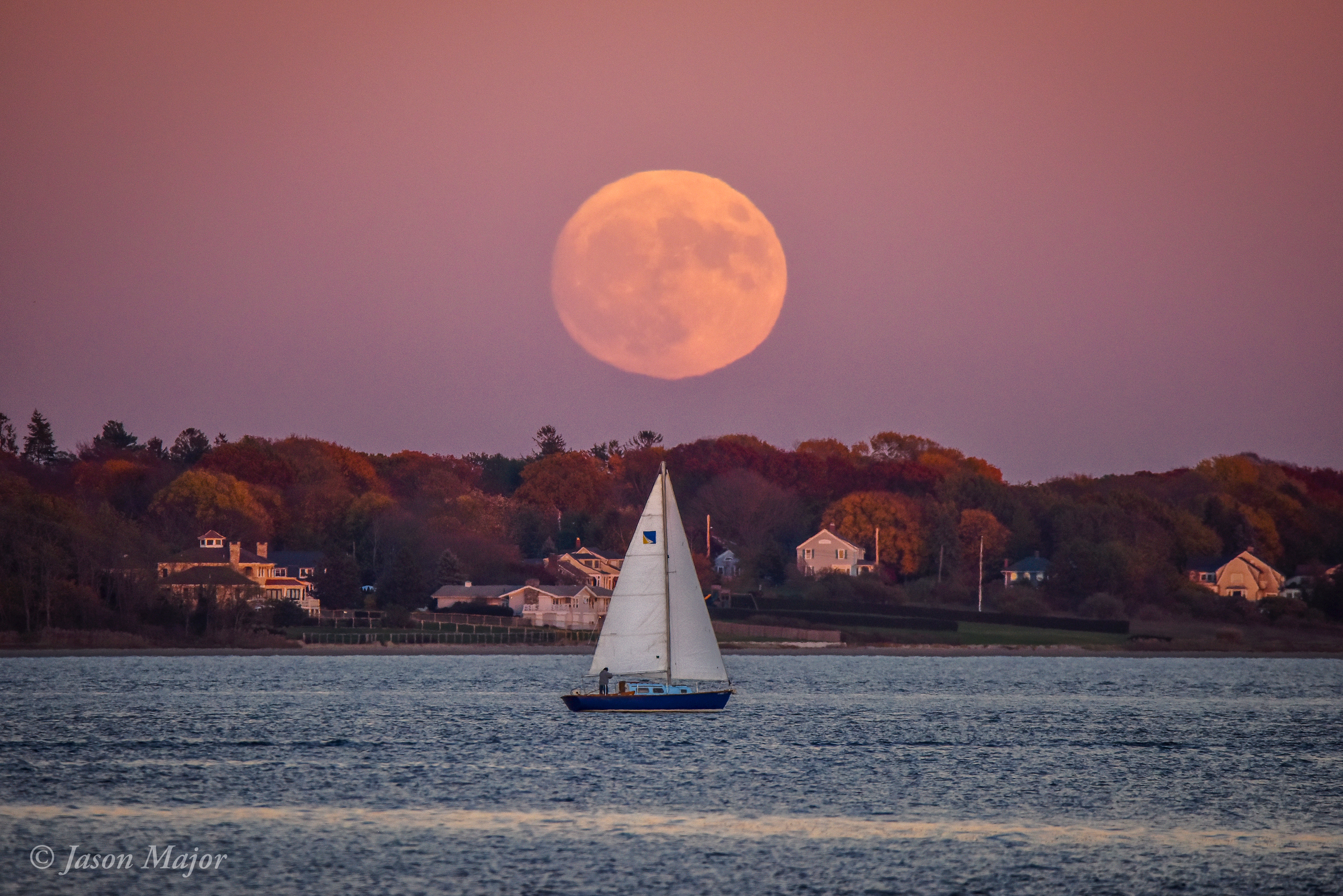 ADDED NOV. 13: Here’s a view of the nearly-super almost-full Moon rising above East Providence in Rhode Island, captured from Conimicut Point in Warwick—the same location where I got the lighthouse photo in September but looking a bit more north, as the Moon’s location in the sky has shifted over the past couple of months.