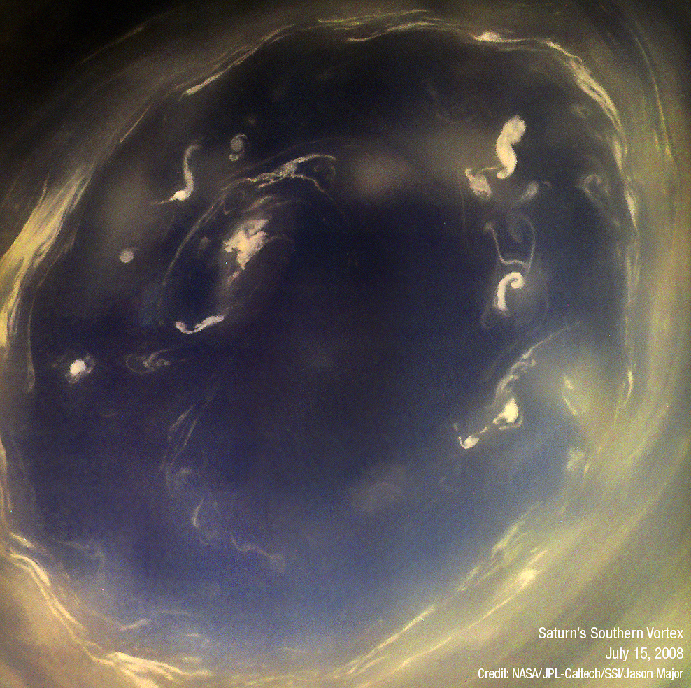 I know I said in my previous post that the Solar System is not a vortex (and it’s not) but that doesn’t mean there are no vortexes in the Solar System—in fact, thanks to the churning atmospheres of the gas giants, it’s full of them! And that’s no better demonstrated than at the poles of Saturn, where giant hurricane-like storms spin away year after year, powered by atmospheric convection and the rapid rotation of the planet.