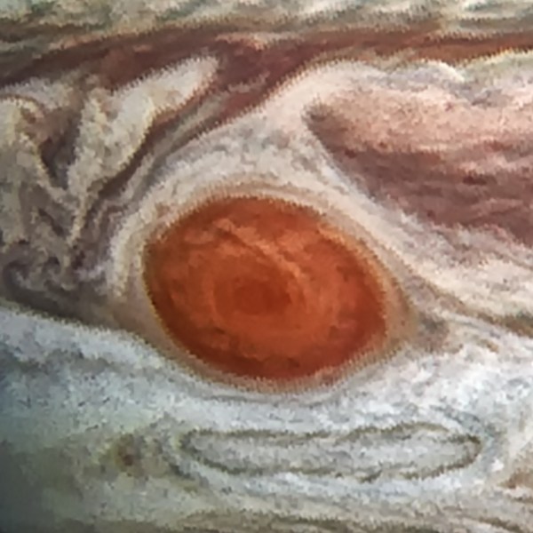 I particularly liked the structure visible inside the Great Red Spot (GRS for short). This storm is easily twice the width of the Earth!