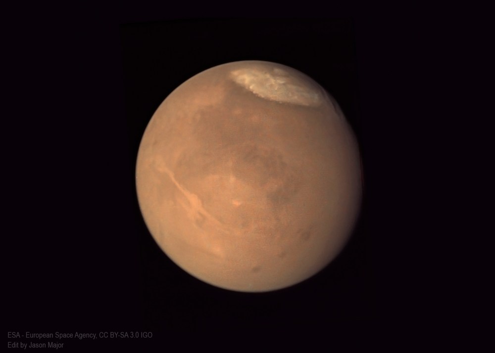 It’s Opposition Day! No, that’s not a political stance but rather a geometric one, relating to the positions of Earth, the Sun, and Mars in the Solar System. Today our neighboring planet Mars will be directly opposite the Sun relative to Earth, which will make it the second-brightest “star” in the night sky after Venus. Since it takes Mars about two years (687 Earth days, to be exact) to orbit the Sun, this type of alignment event occurs, oh, about every two years. But this year it’s occurring when Mars also happens to be closest in its orbit to the Sun, an event called perihelic opposition. So tonight, go outside and you’ll see (weather permitting!) a very bright orange-colored star in the southeast—that’s our neighbor Mars, just under 36 million miles away!*