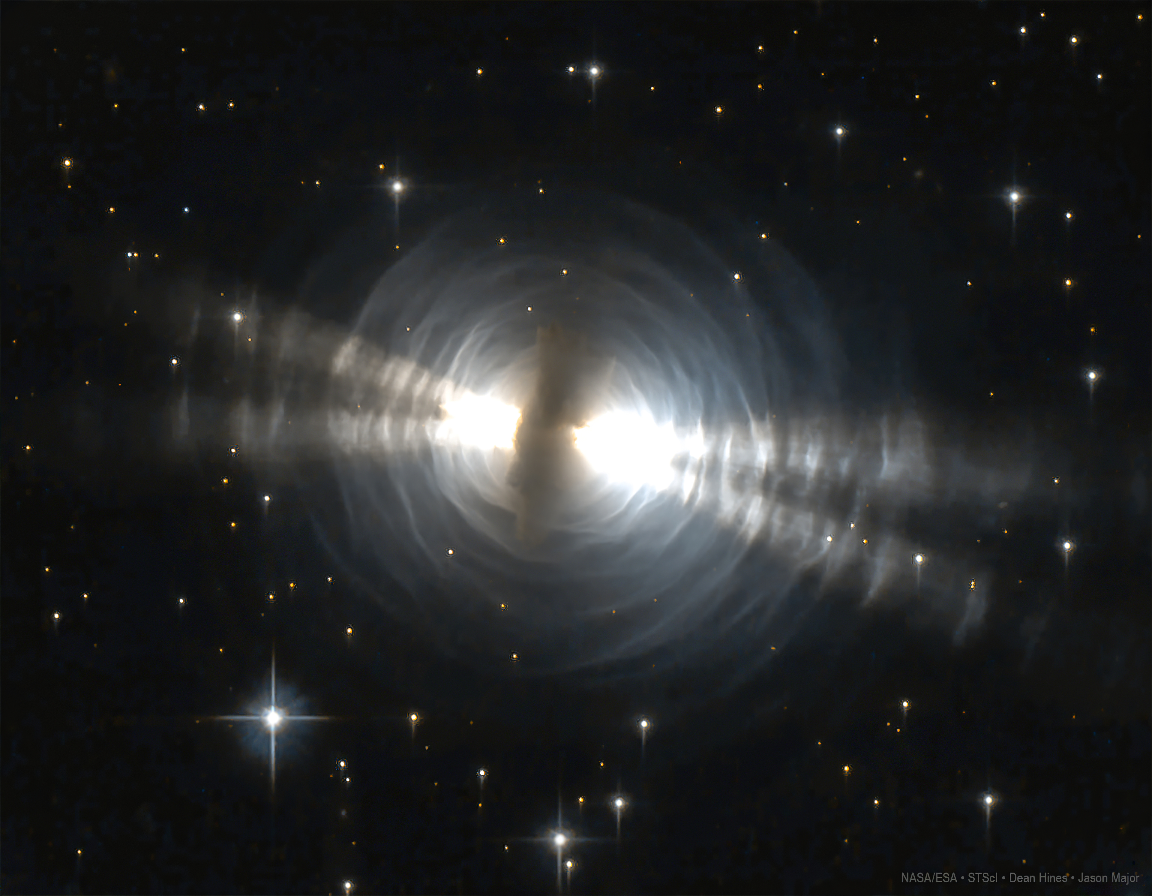 Altogether the Egg Nebula is a little over a light-year across, or about the same diameter of the Solar System including the entire Oort Cloud.