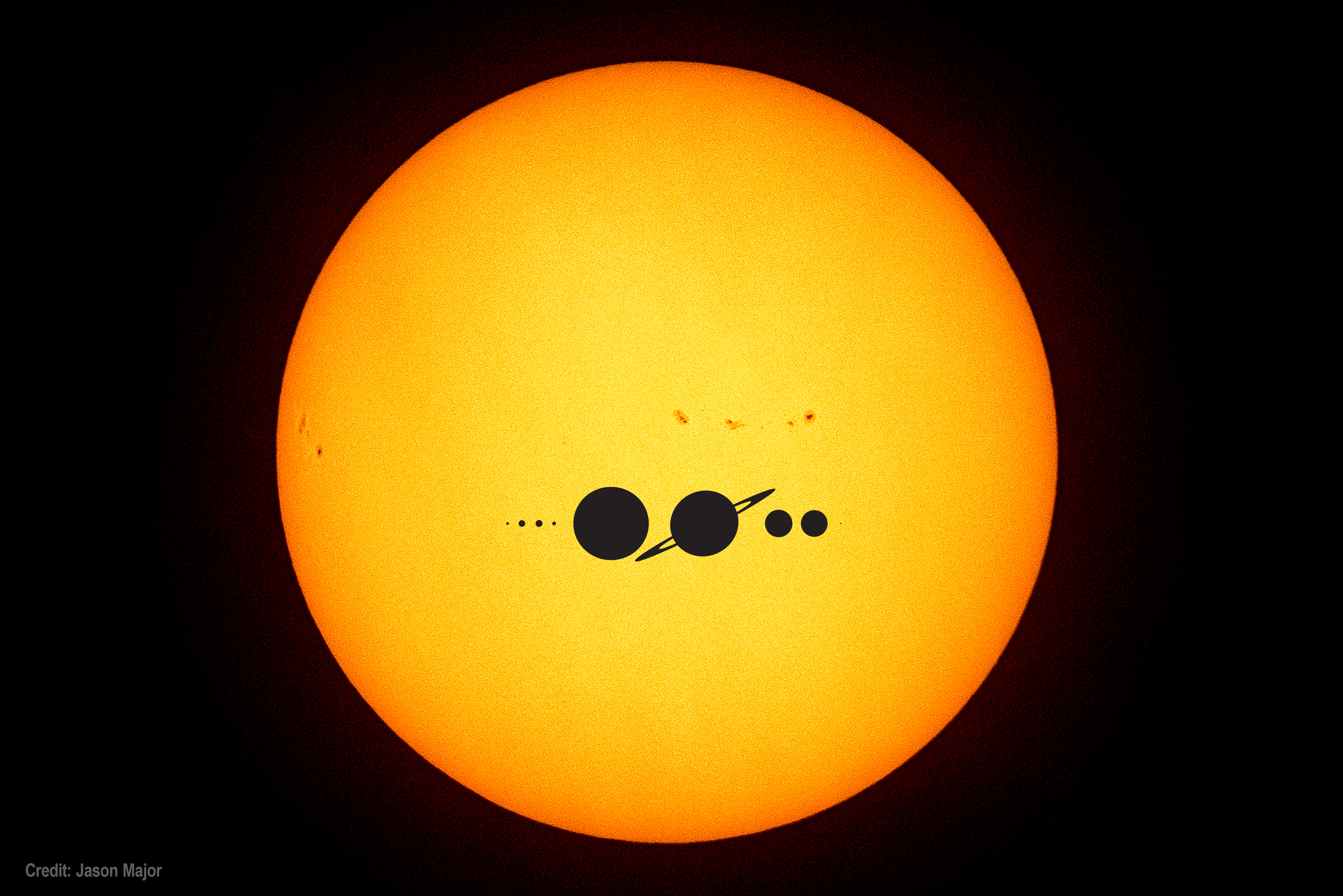 And then when you manage to get a good grasp of all that in your mind, remember that the Sun in vastly larger than all those objects, it alone comprising about 99.8% of the mass of the Solar System. (And with all due respect it’s really just an average-sized, middle-aged, G-class star.)