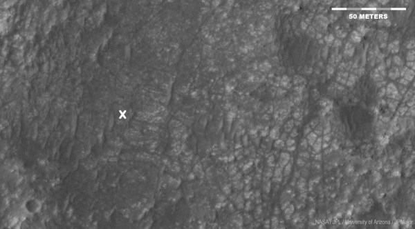 In addition to pictures from the rover and its sky crane, NASA also shared one captured by the HiRISE camera aboard the Mars Reconnaissance Orbiter, a spacecraft that has been in orbit around Mars since March 2006. It shows the landing region inside Jezero Crater captured just as Perseverance, still inside its back shell, was descending through the atmosphere with its enormous 70-foot-wide supersonic parachute!